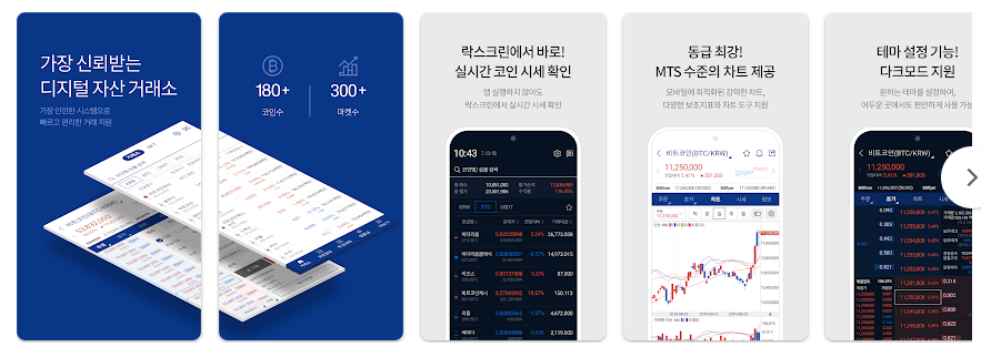 - 거래: 원화 및 코인 간 거래 지원