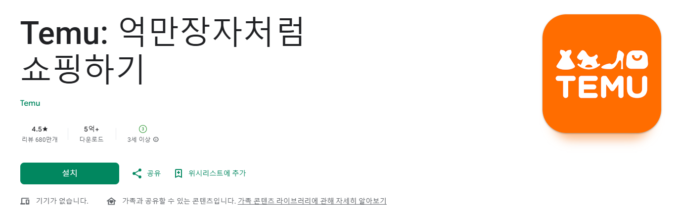 - 검색 결과에서 테무 앱을 선택해 주세요.