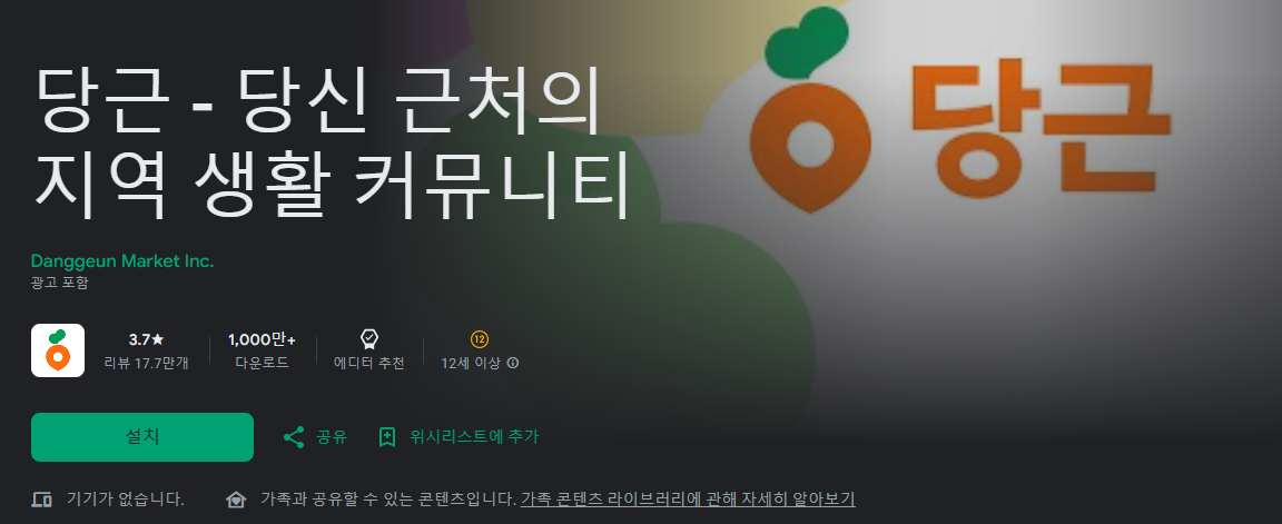 - 검색 결과에서 당근 앱을 선택해 주세요.