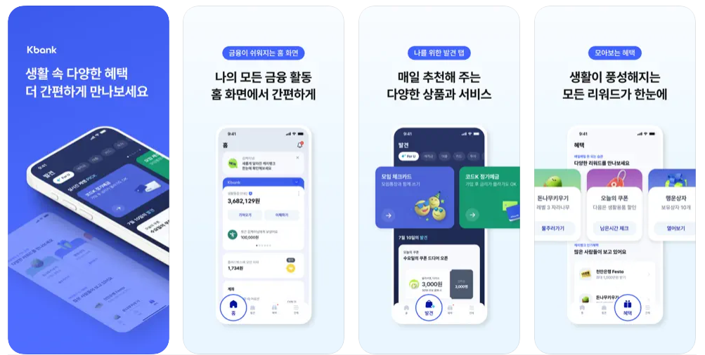 케이뱅크(Kbank)는 대한민국 최초의 인터넷 전문은행으로, 비대면으로 계좌 개설 및 금융 서비스를 이용할 수 있는 편리한 은행 앱입니다.