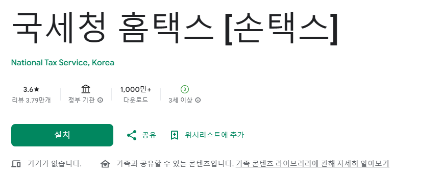 - 검색 결과에서 홈택스 앱을 선택합니다.